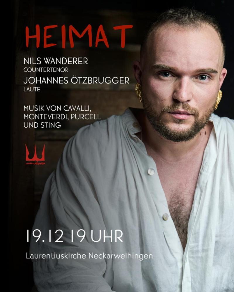 Der gefeierte Countertenor Nils Wanderer, der in dieser Saison sein Debüt an der Metropolitan Opera in New York gibt, und sein renommierter Lautenist Johannes Oetzbrugger gestalten gemeinsam einen besonderen musikalischen Abend. Auf dem Programm stehen Werke von Cavalli, Purcell und Dowland, die in spannungsvollem Dialog mit moderneren Klängen von Sting und Eric Clapton („Tears in Haeven“) treten. Die beiden Künstler verbinden barocke Ausdruckskraft mit zeitgenössischer Emotionalität - ein Konzert, das berührt und überrascht. Im Rahmen ihrer Tour „Heimat“ sind sie am 19.12.25 um 19 Uhr in der Laurentiuskirche zu erleben.